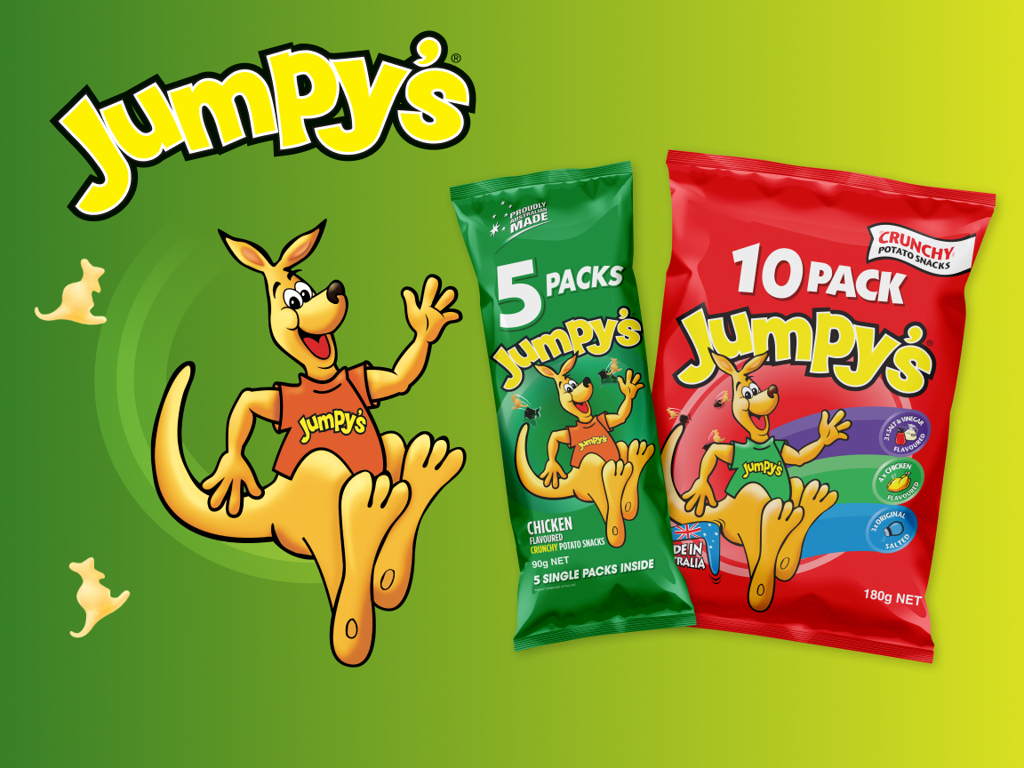 Jumpy's Chicken are yummy, crispy, crunchy, bite-sized kangaroo-shaped potato snacks.